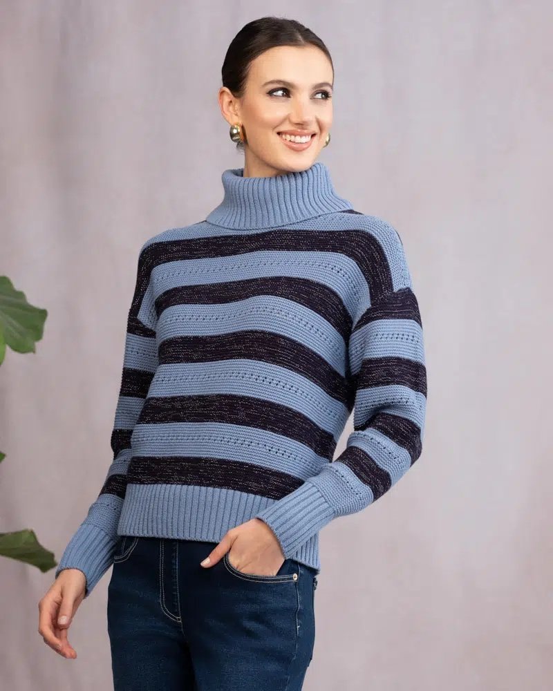 Alison Sheri Ladies Blue Combo Knit Sweater