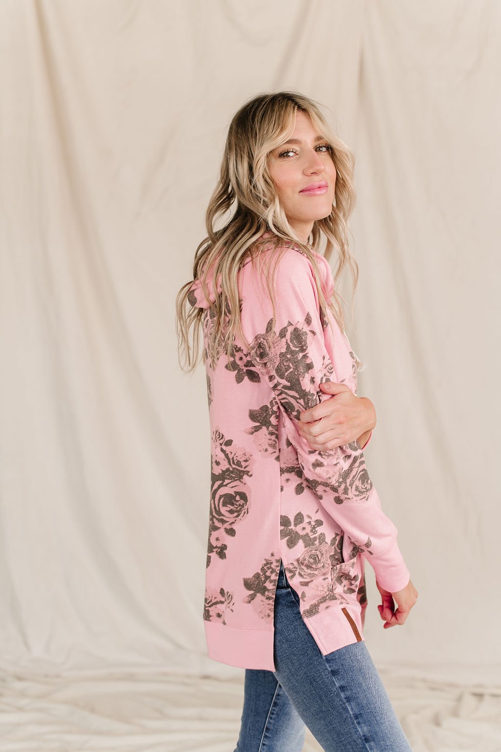 Ampersand Ave Ladies Smell the Roses Sideslit Hoodie
