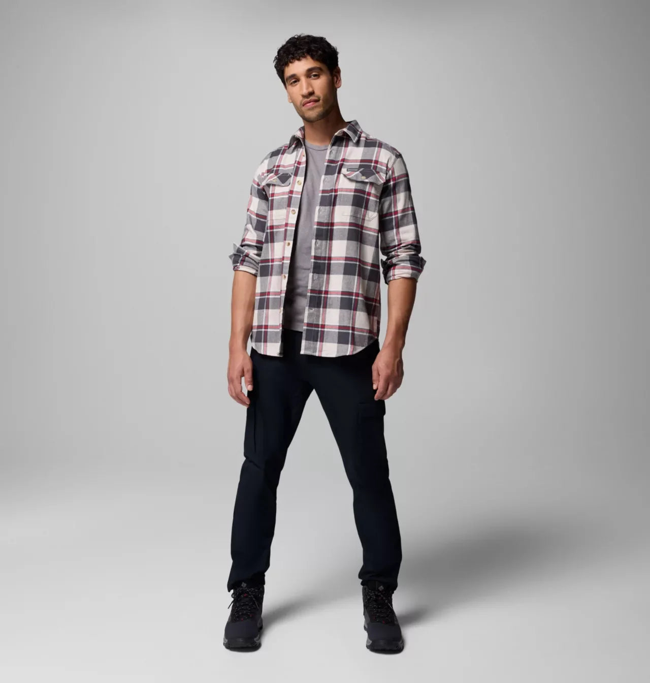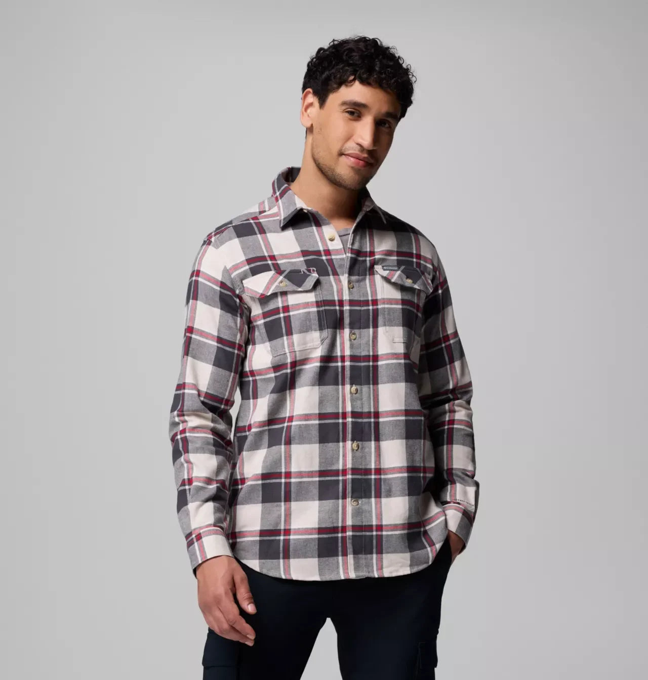 Columbia Mens Dark Stone Trails Edge Flare Gun Flannel LS Shirt