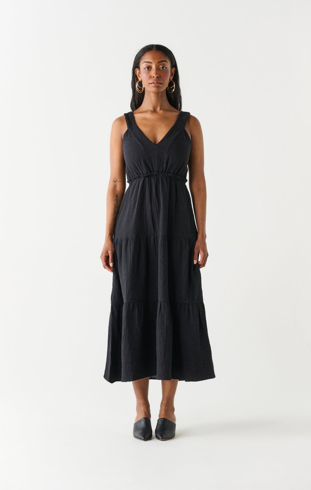 Dex Ladies Black Cotton Midi Dress