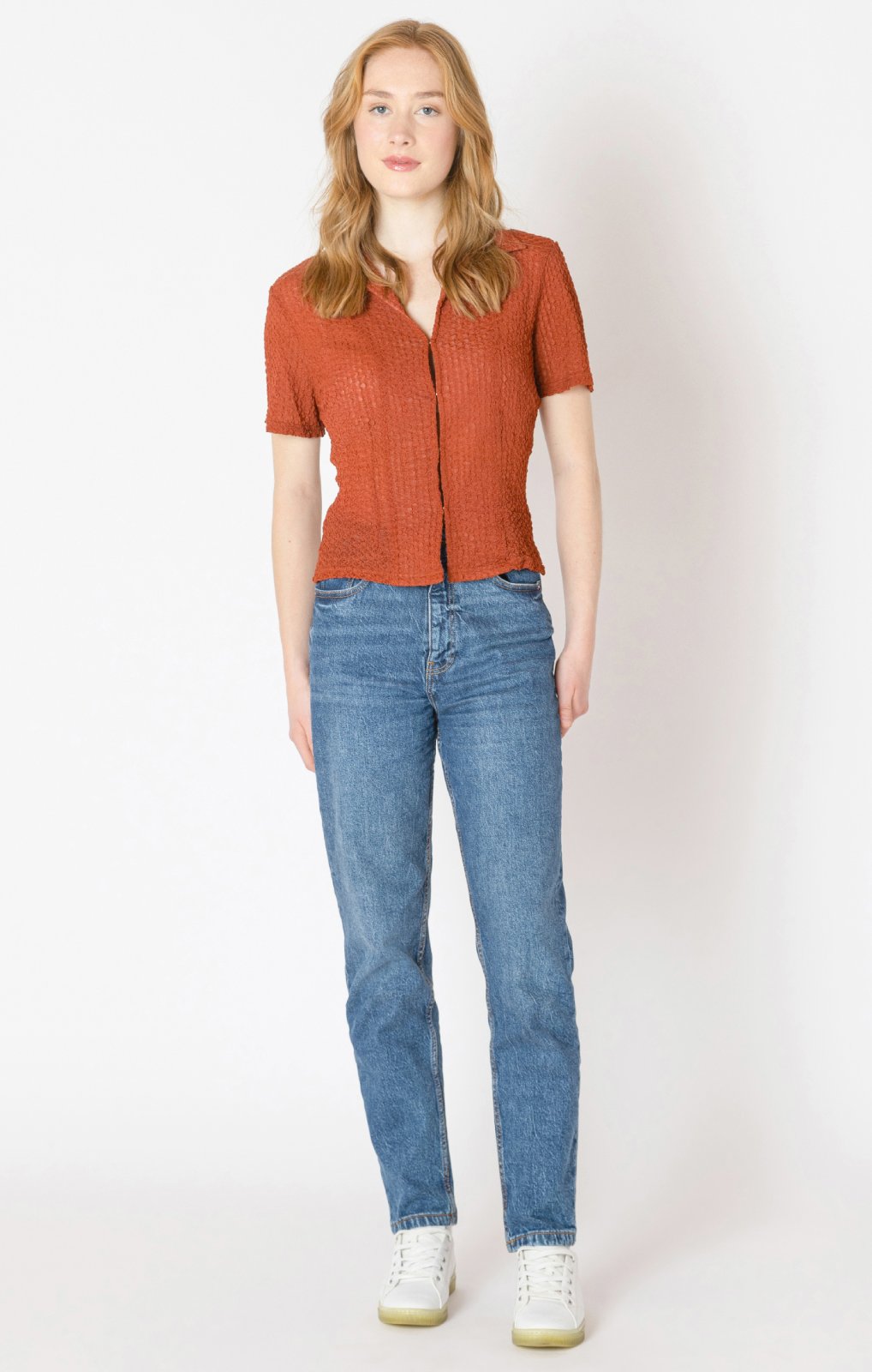 Dex Ladies Burnt Orange Clasp Closure Polo Top