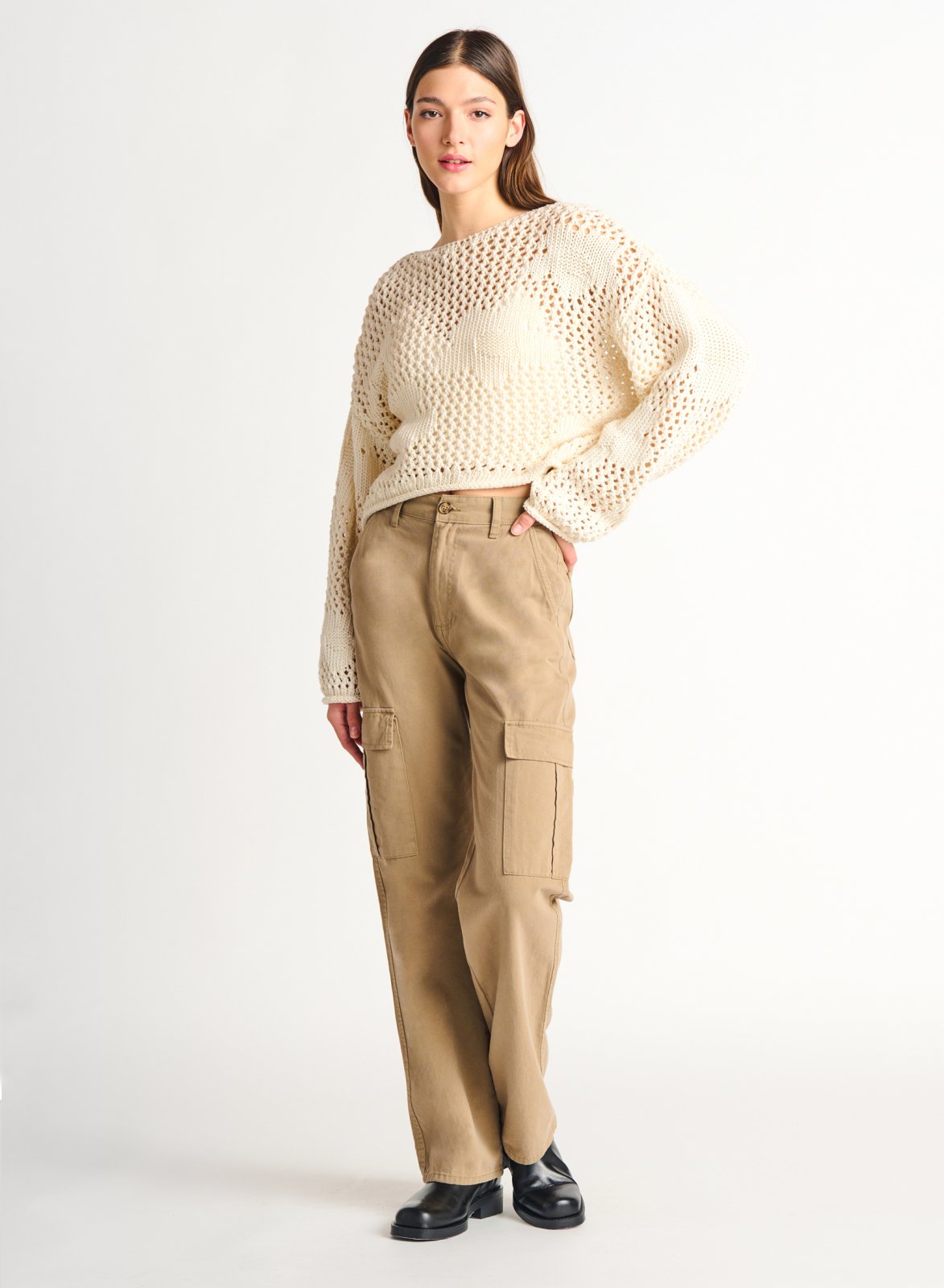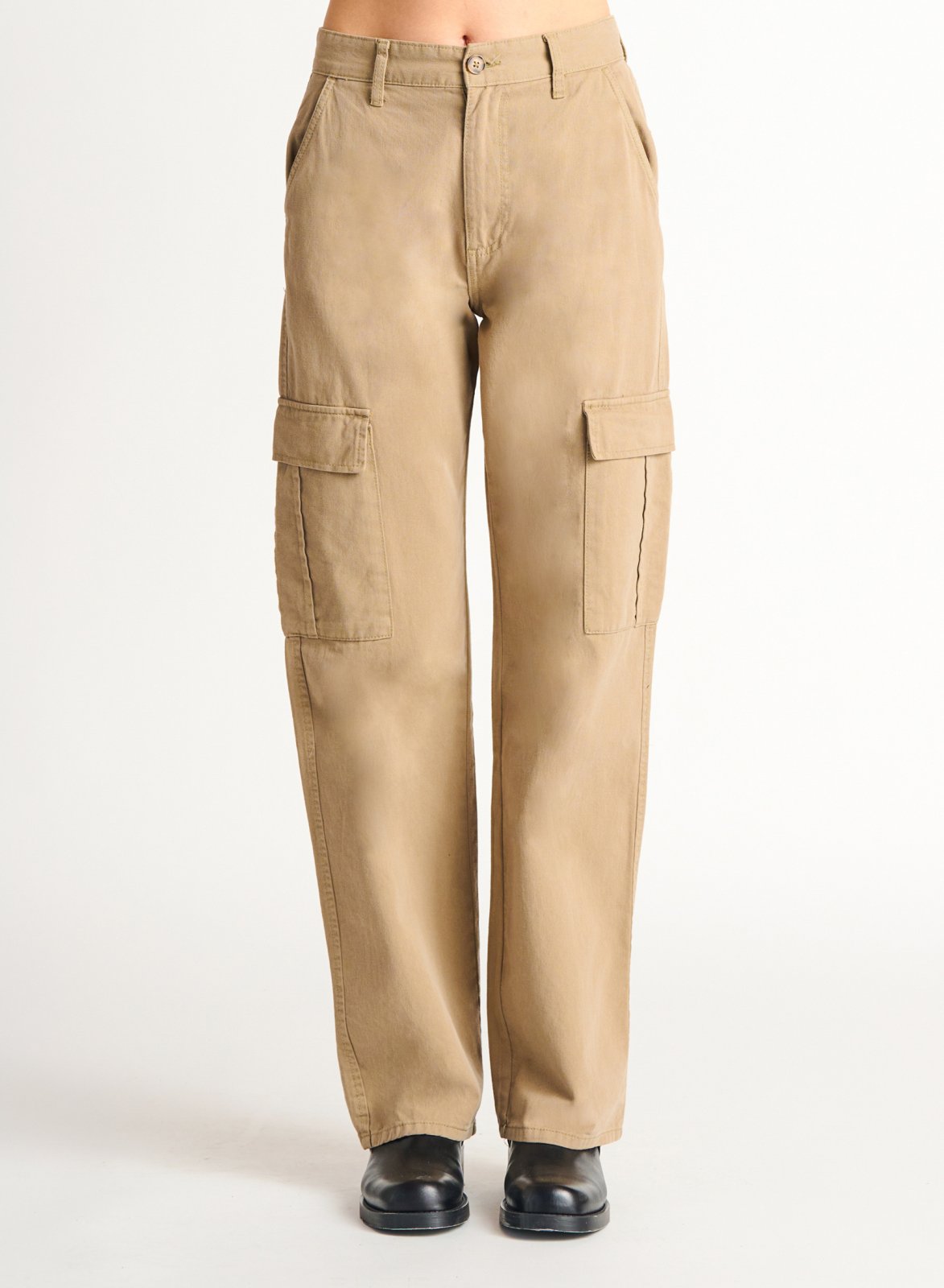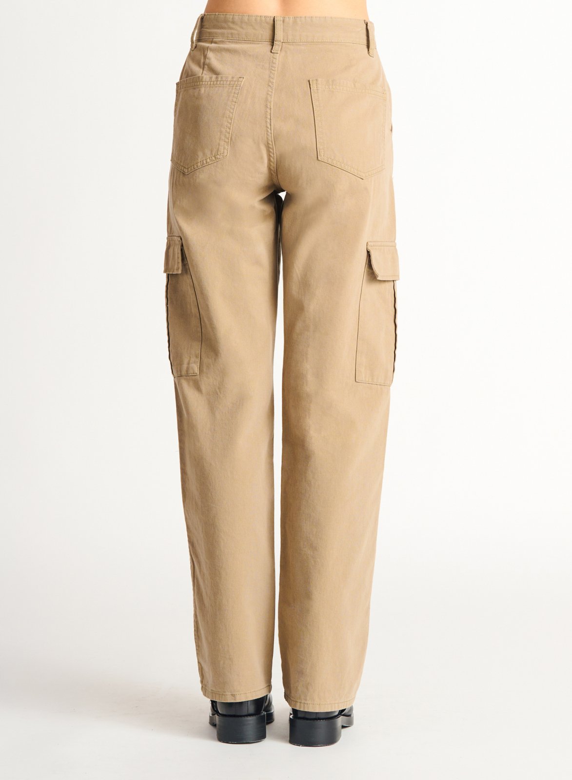 Dex Ladies High Rise Straight Leg Med Tan Wash Cargo Pant