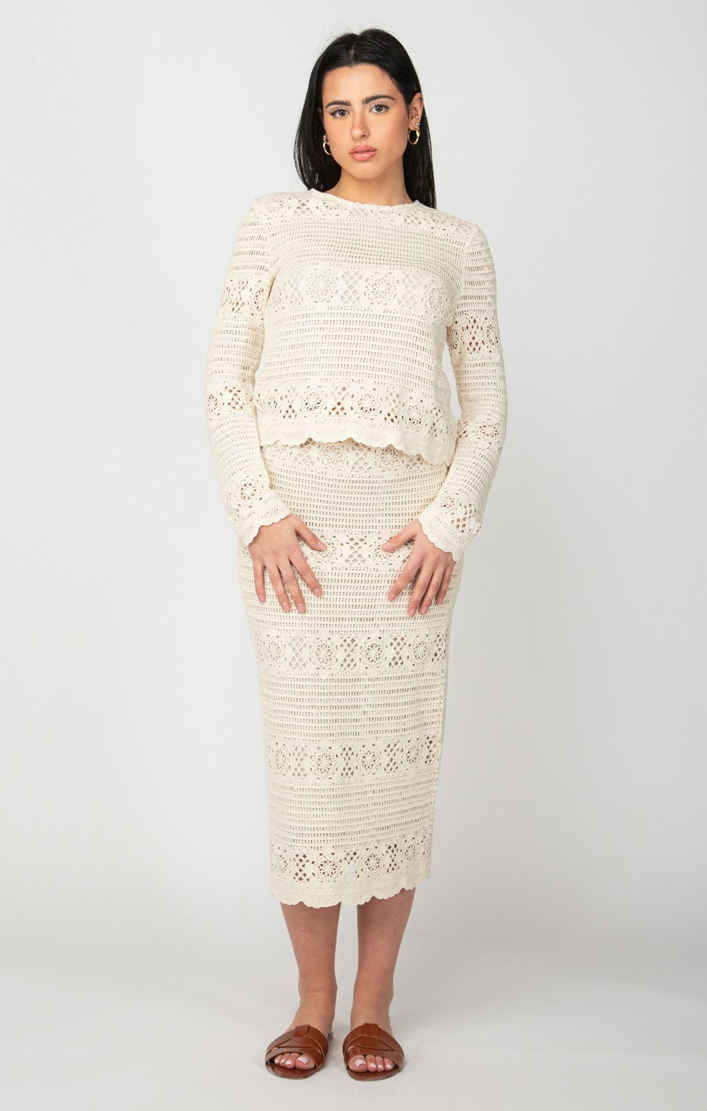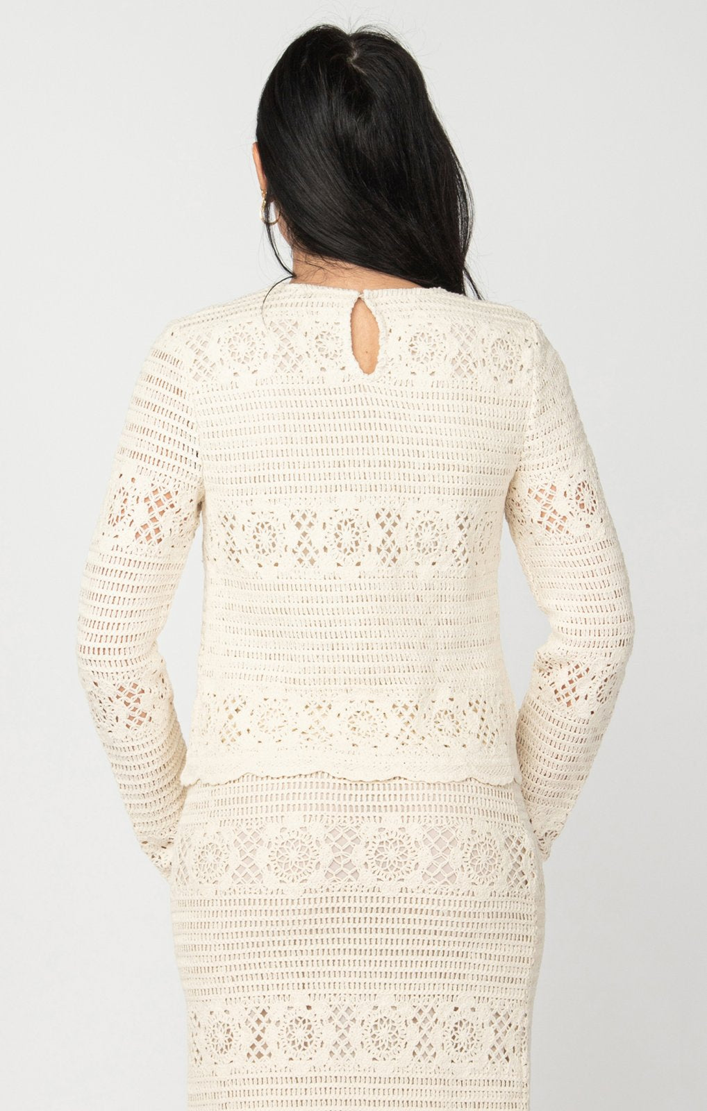 Dex Ladies Oatmeal Scallop Hem Crochet Top