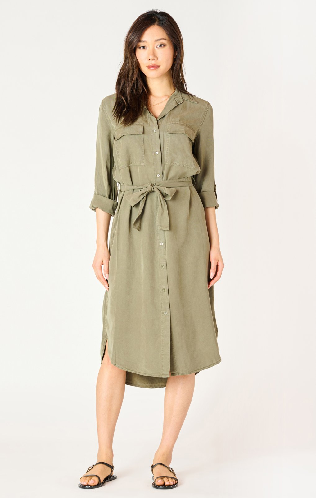 Dex Ladies Washed Olive Belted Utility Midi Dress