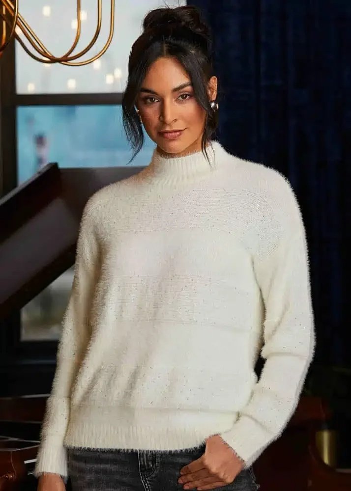Elena Wang Ladies Off White Knit Sweater
