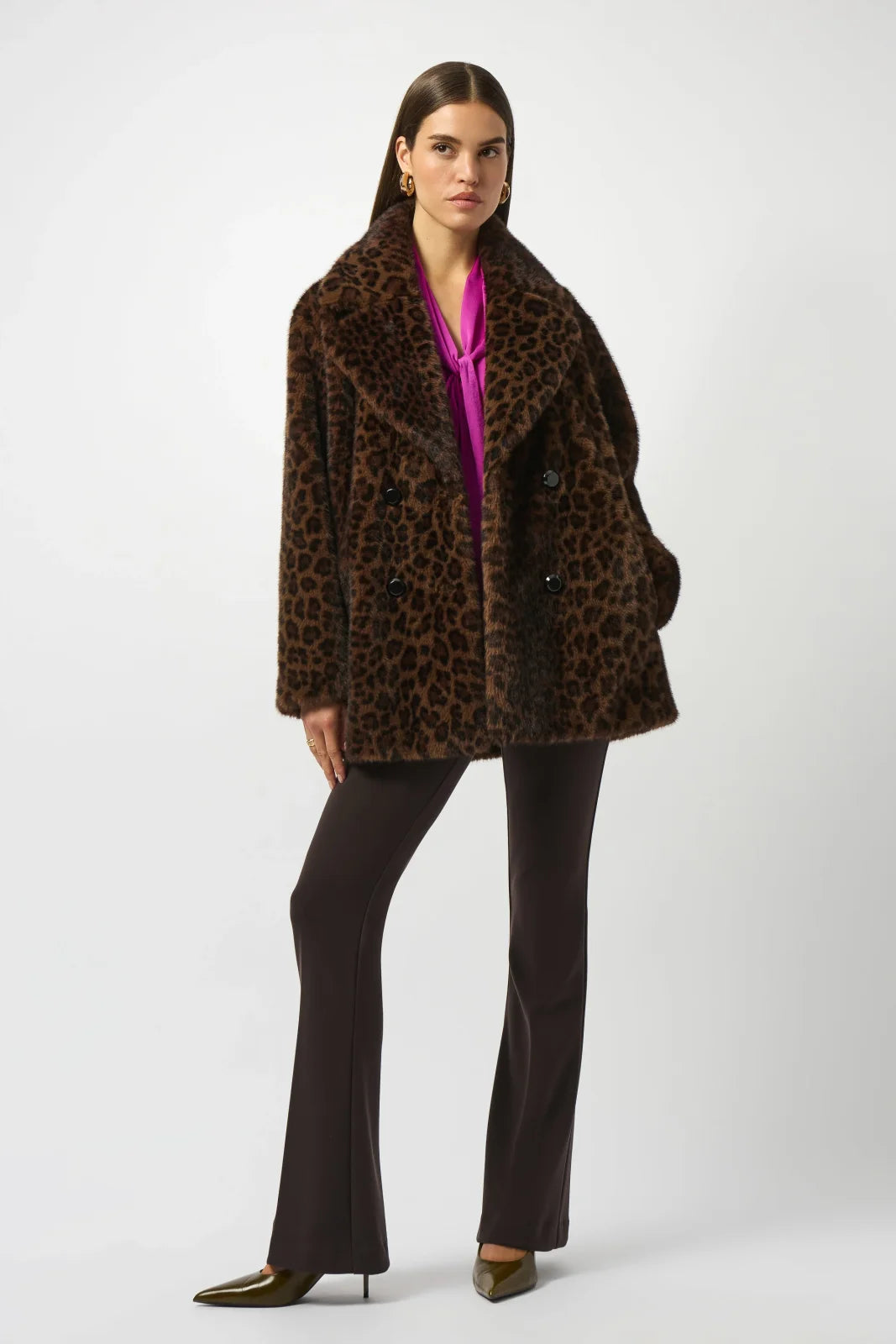 Joseph Ribkoff Ladies Beige/Black Faux Fur Leopard Print Double Breasted Coat