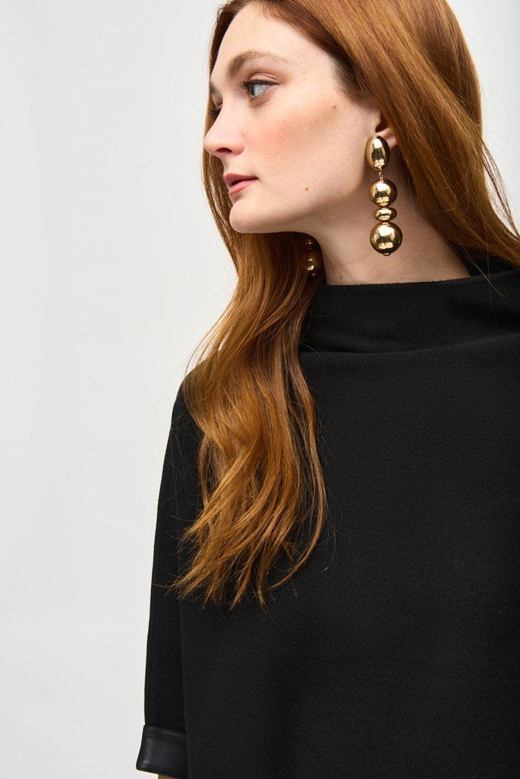 Joseph Ribkoff Ladies Black Sweater Knit Funnel Neck Top