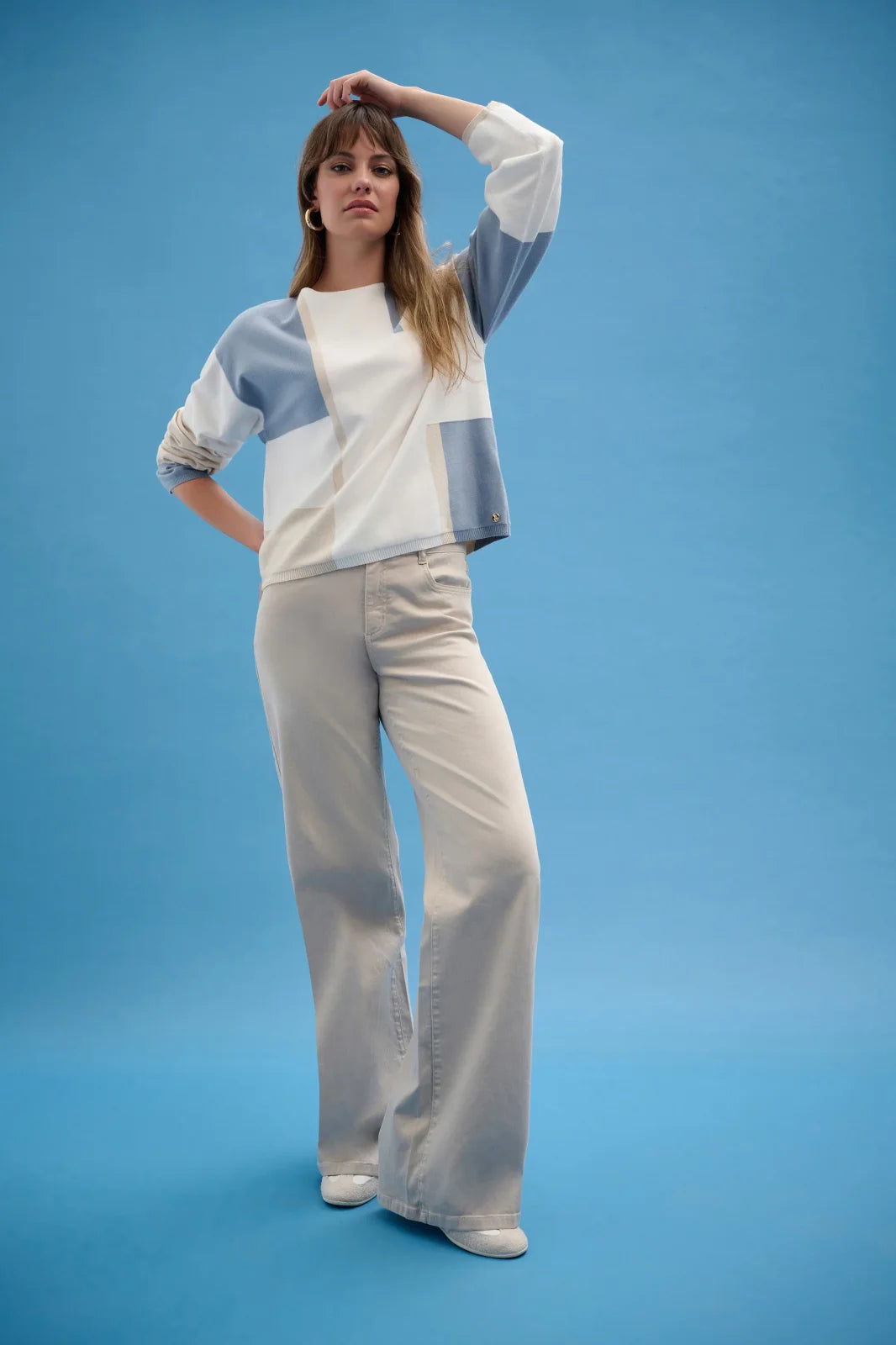 Joseph Ribkoff Ladies Winter White/Birch/Chambray Brushed Viscose Yarn Colour Block Sweater