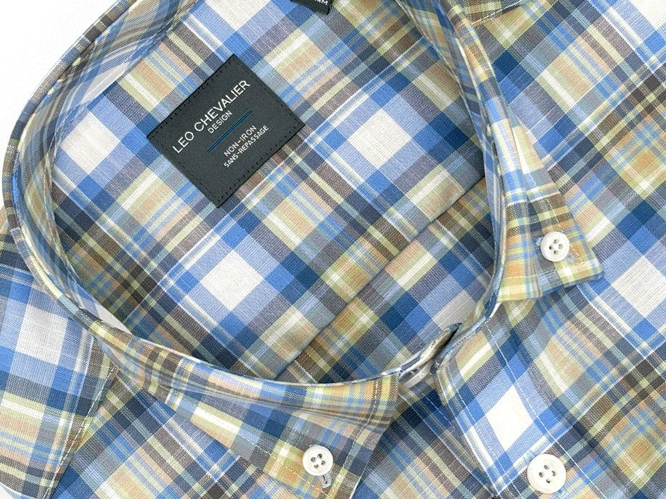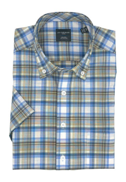 Leo Chevalier Mens Blue 100% Cotton SS No Iron Button Down Collar Shirt