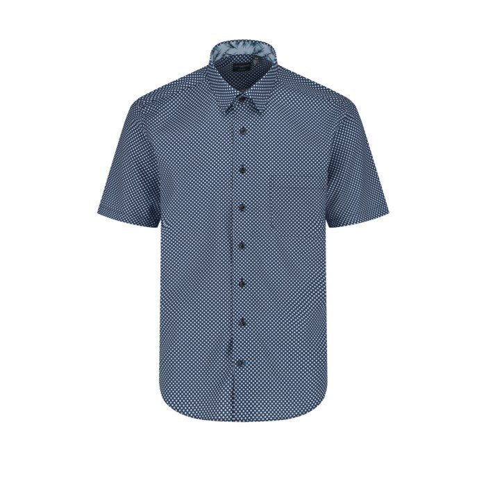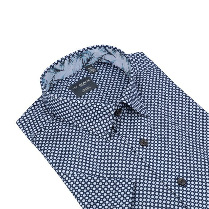 Leo Chevalier Mens Navy Mini Print SS Non Iron Sport Shirt