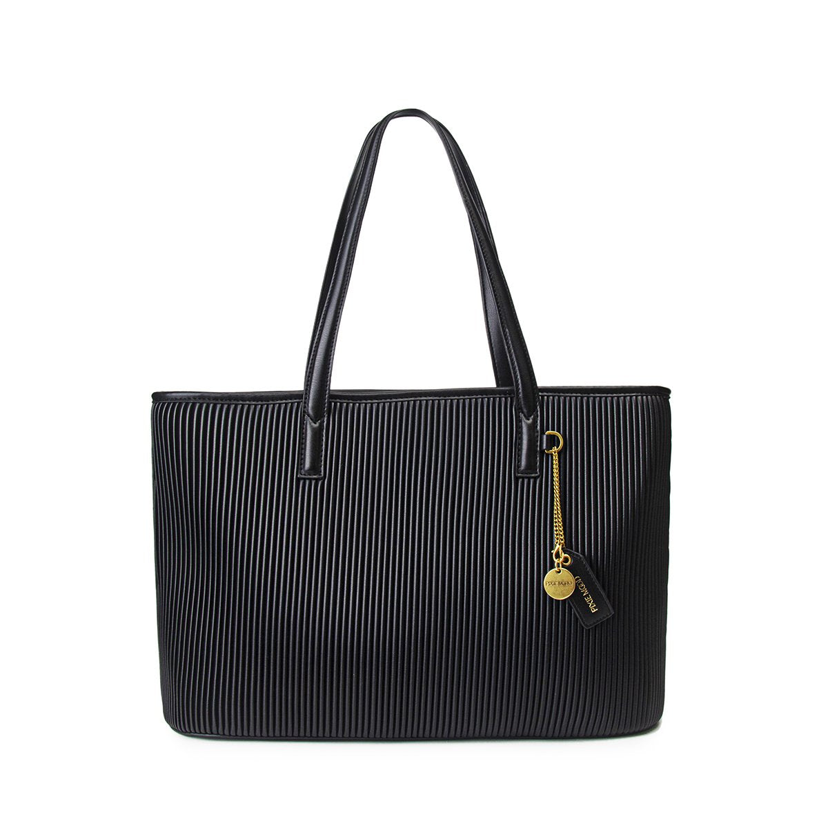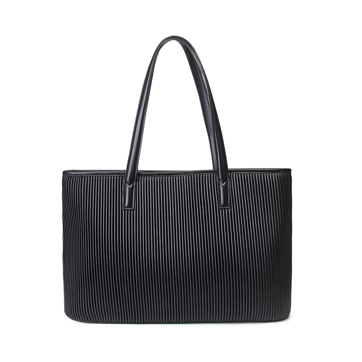 • Made pleated vegan leather• Made with recycled water bottle lining• Double top handles• Interior zip pocket• Interior slip pocket• Fit 15’’ Apple MacBook• Dimensions: L 16.5' x H 10.75' x D 5'