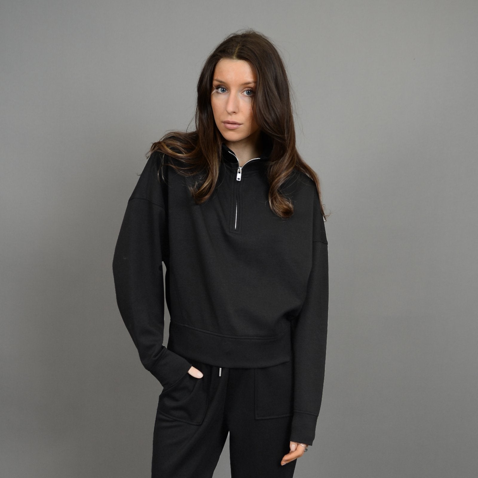 RD Style Ladies Black Mailyn Soft Knit LS Mockneck Half ZIp