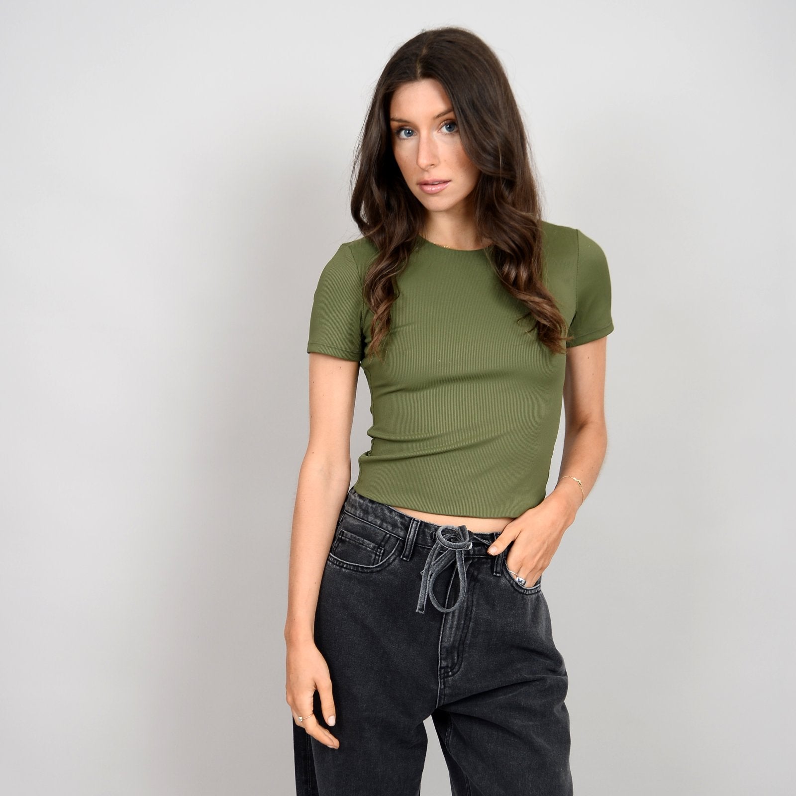 RD Style Ladies Dried Herb Roxi Rib SS Round Neck Tshirt
