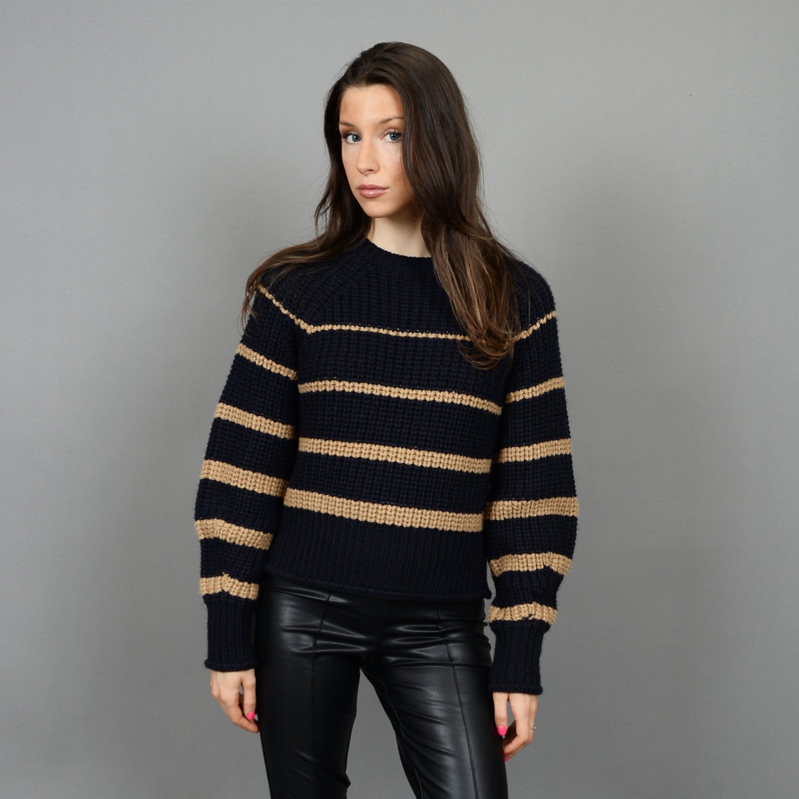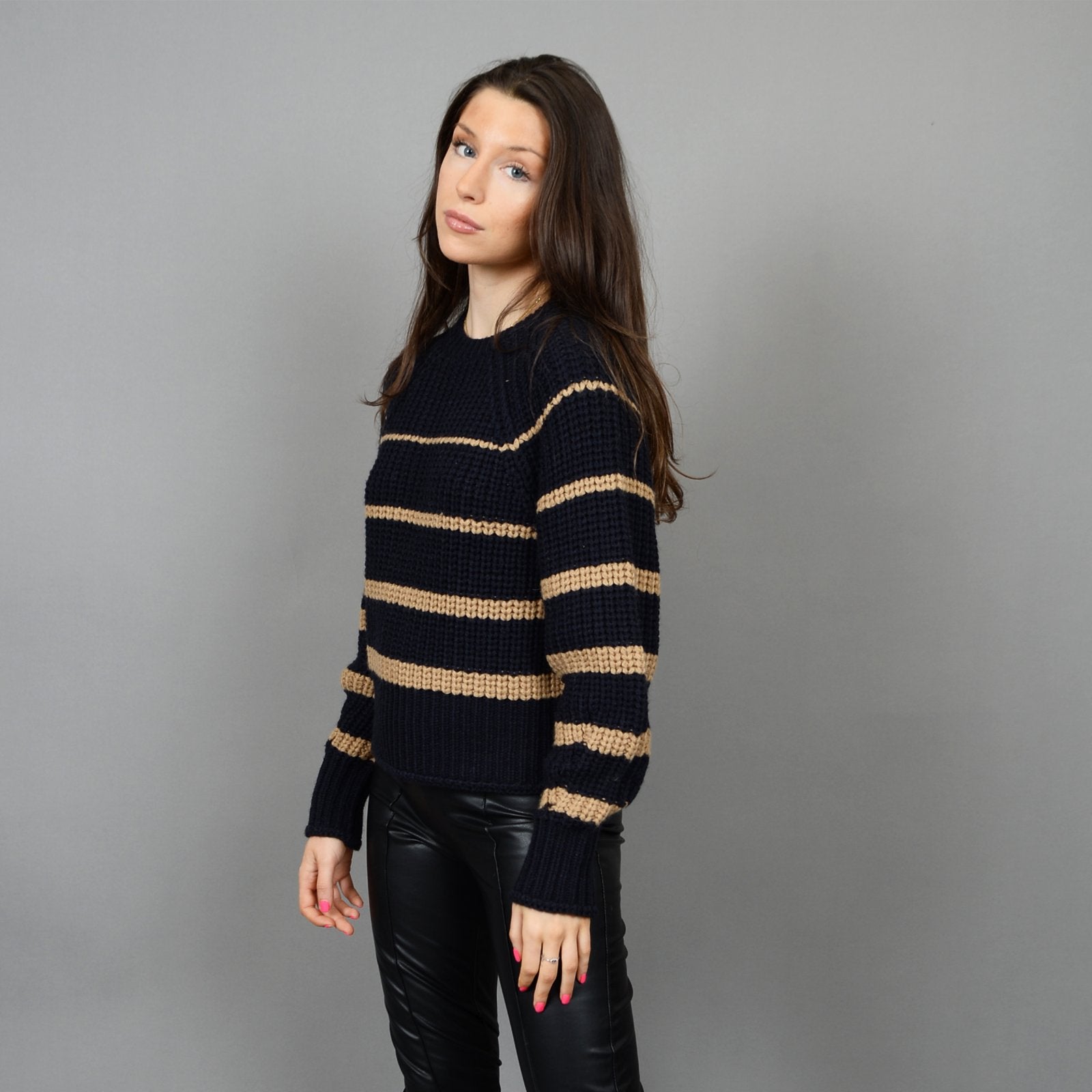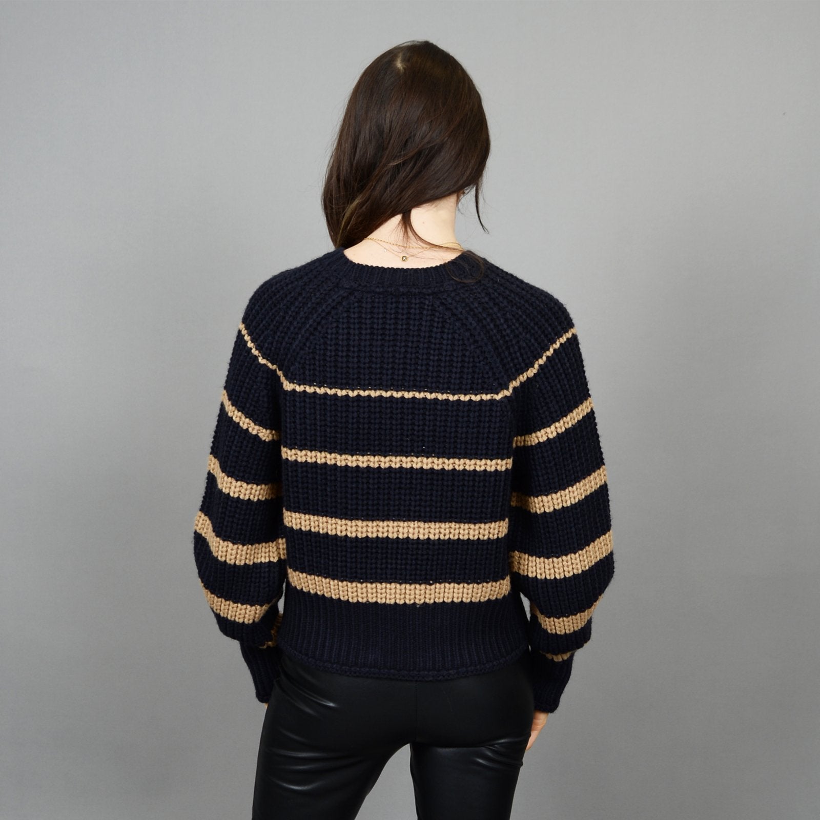 RD Style Ladies Navy/Camel Hifza Long Ragland Sleeve Crewneck