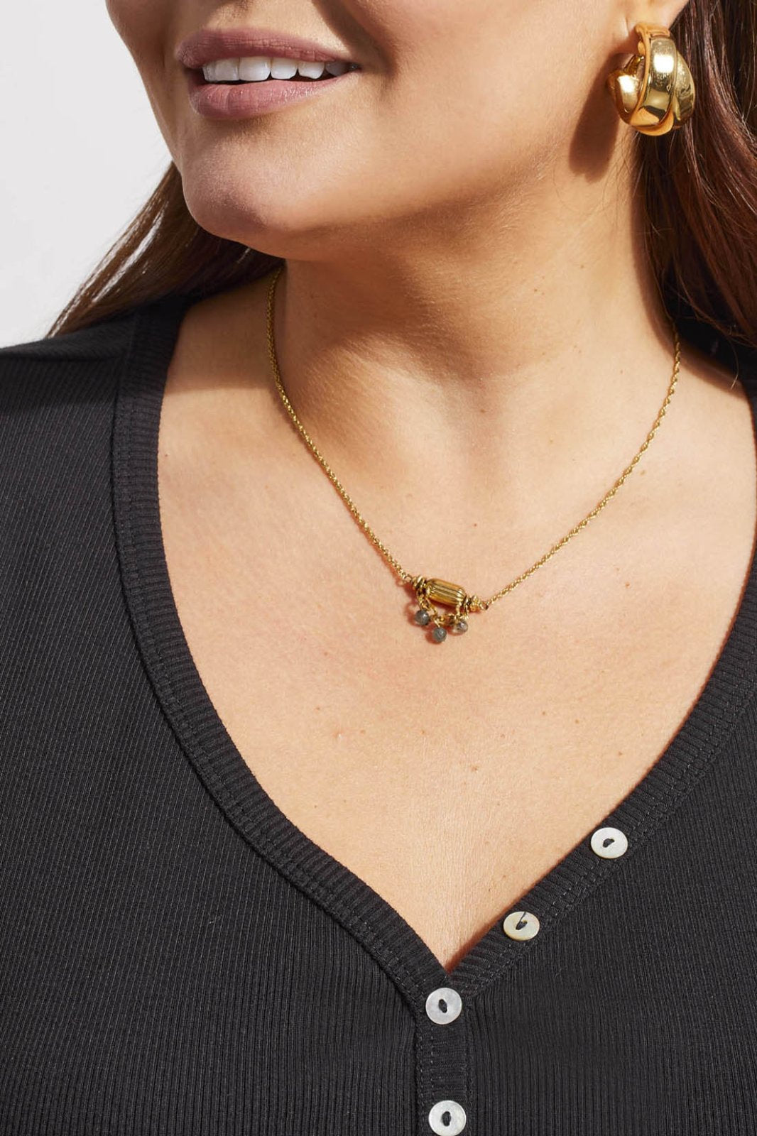 Tribal Ladies Black Henley Tank w/Buttons