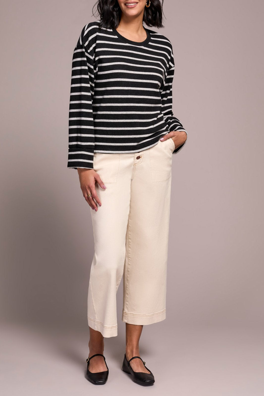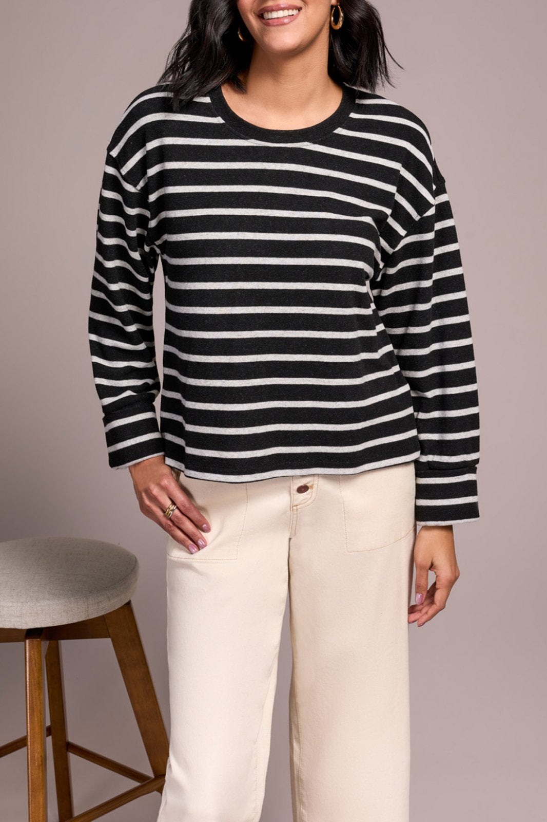 Tribal Ladies Black LS Crew Neck Top w/Cuff
