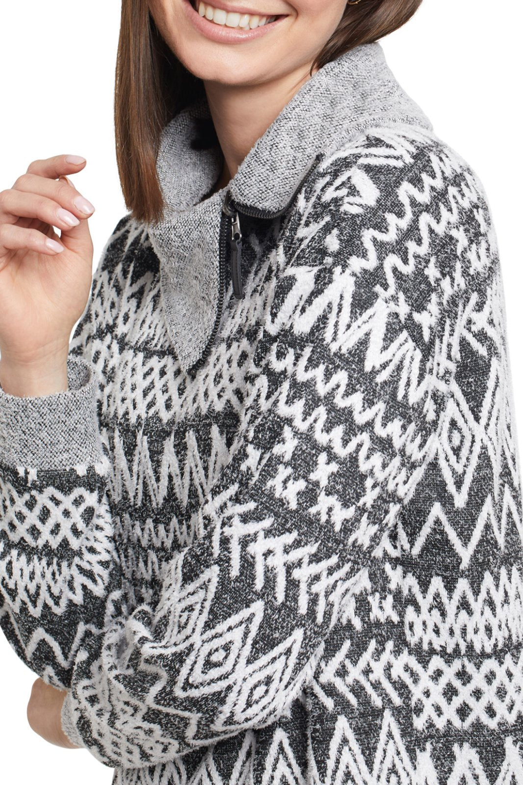 Tribal Ladies Black LS Split Neck Top w/Zipper