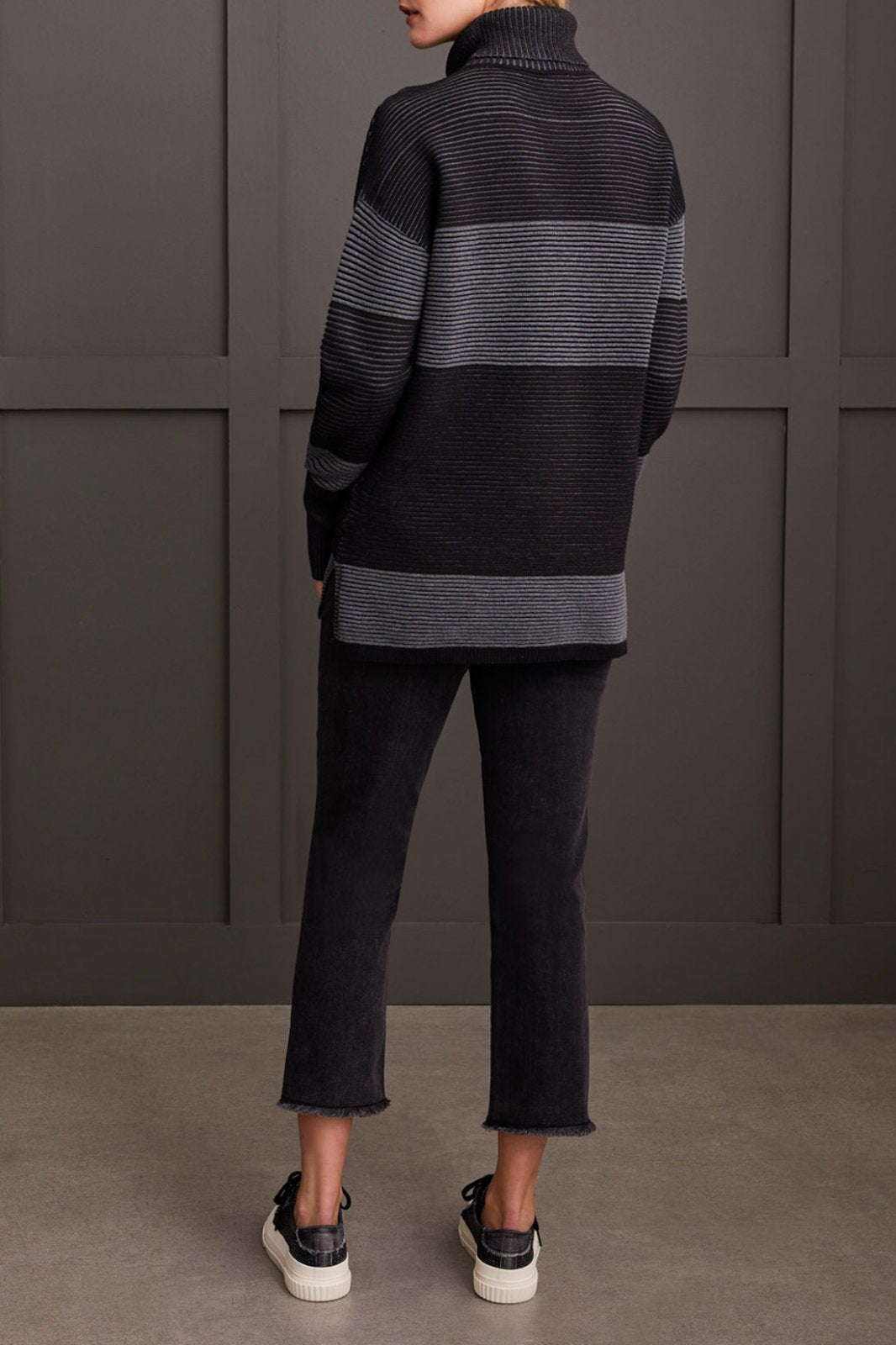 Tribal Ladies Black Turtleneck High Low Sweater w/Side Slits