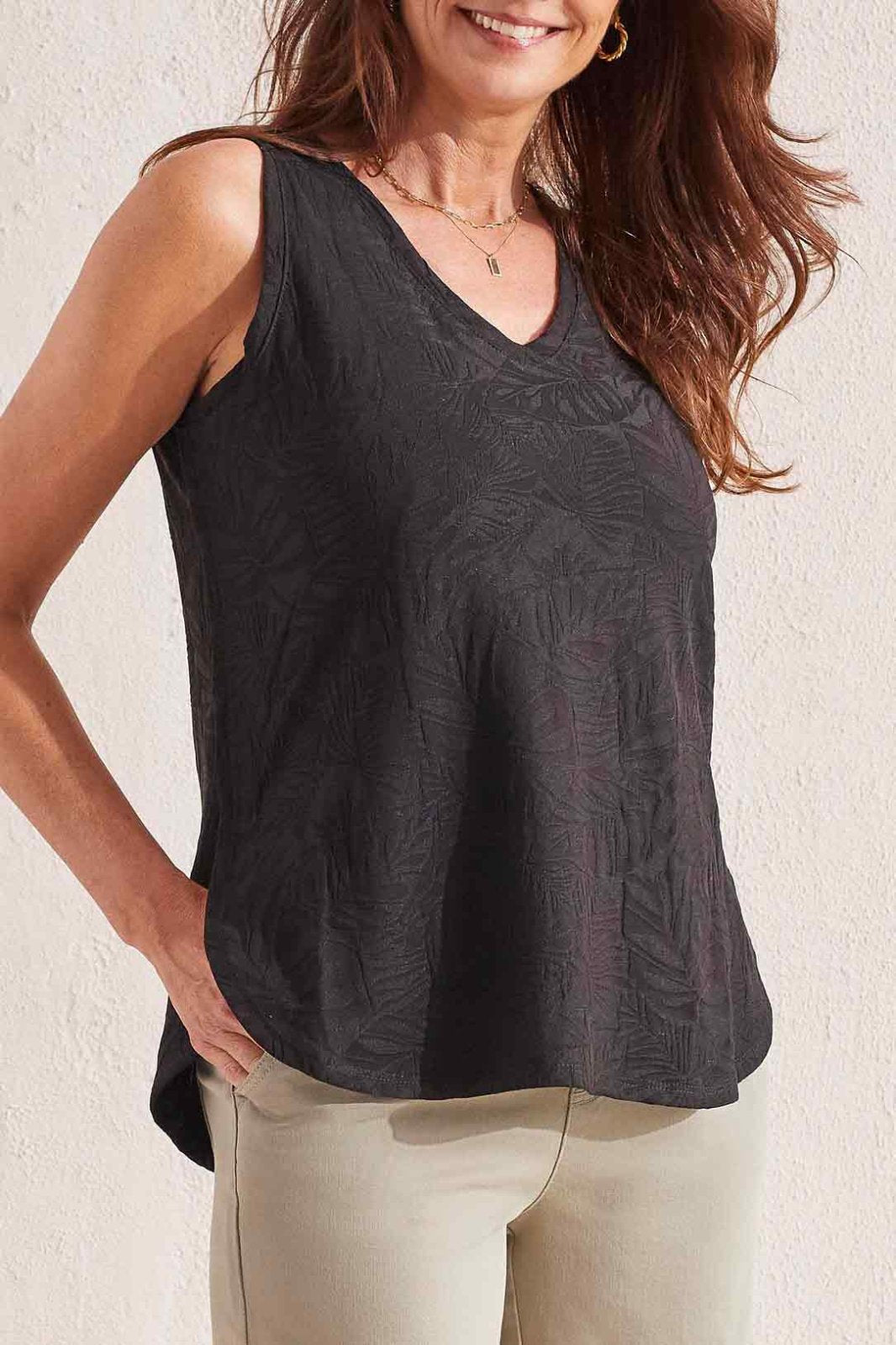 Tribal Ladies Black V-Neck Tank Top w/Curved Hem