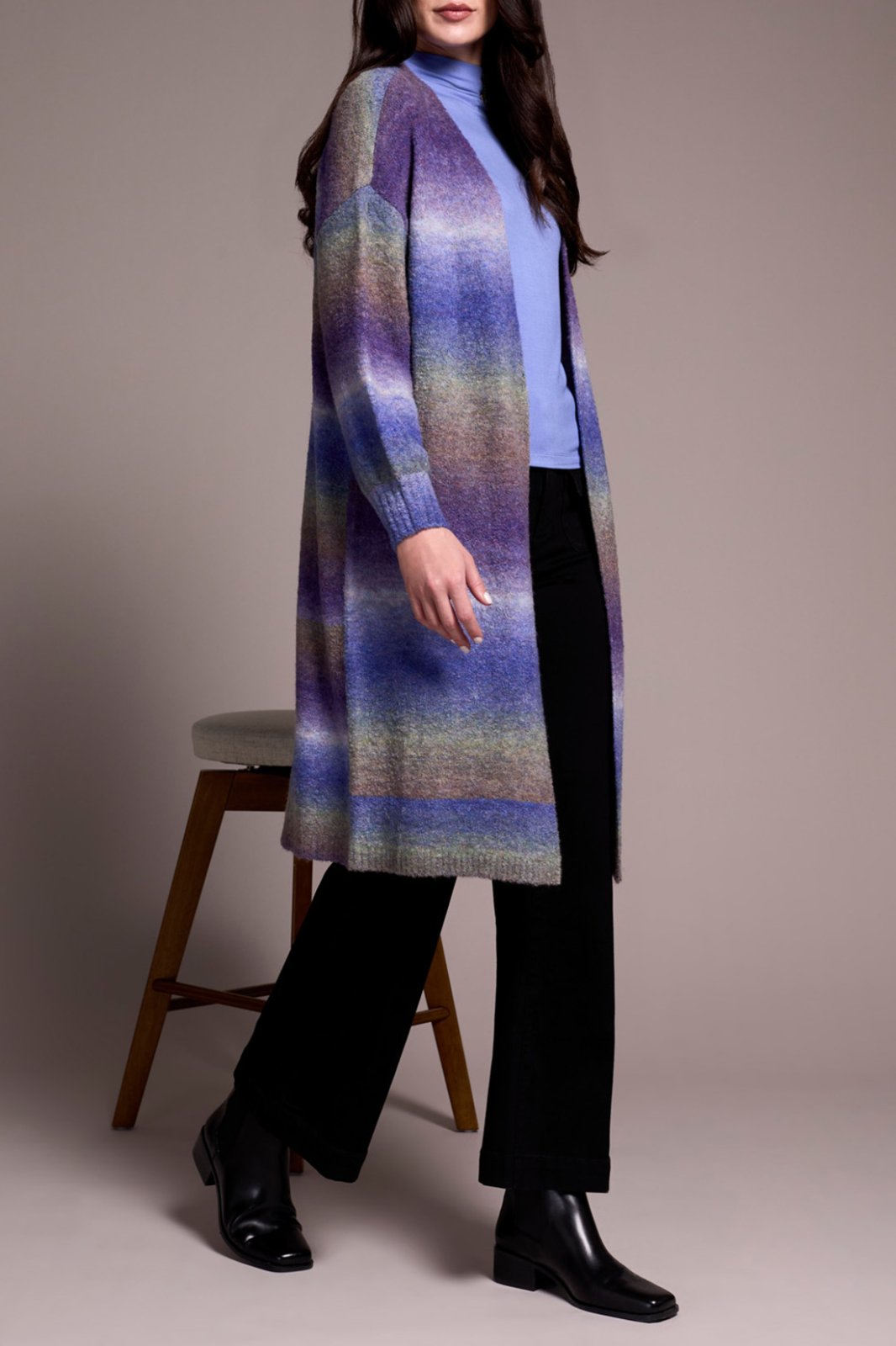 Tribal Ladies Blue Violet Long Sweater Cardigan w/Puff Sleeve
