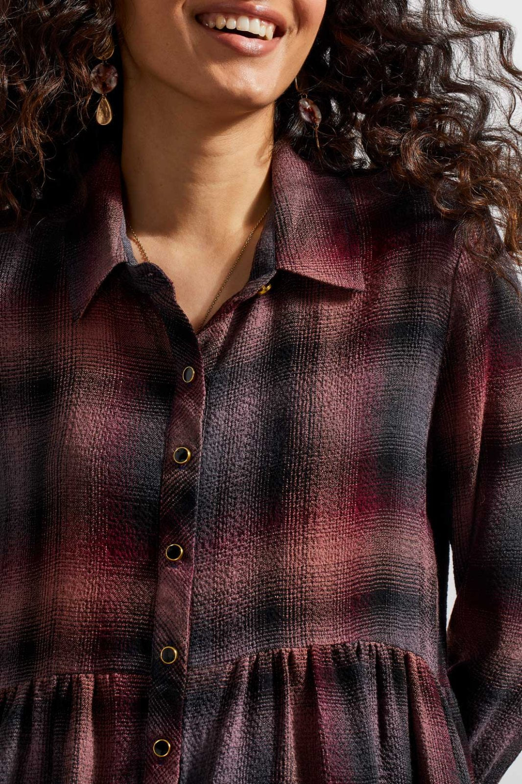 Tribal Ladies Button Front High Low Blouse w/Peplum