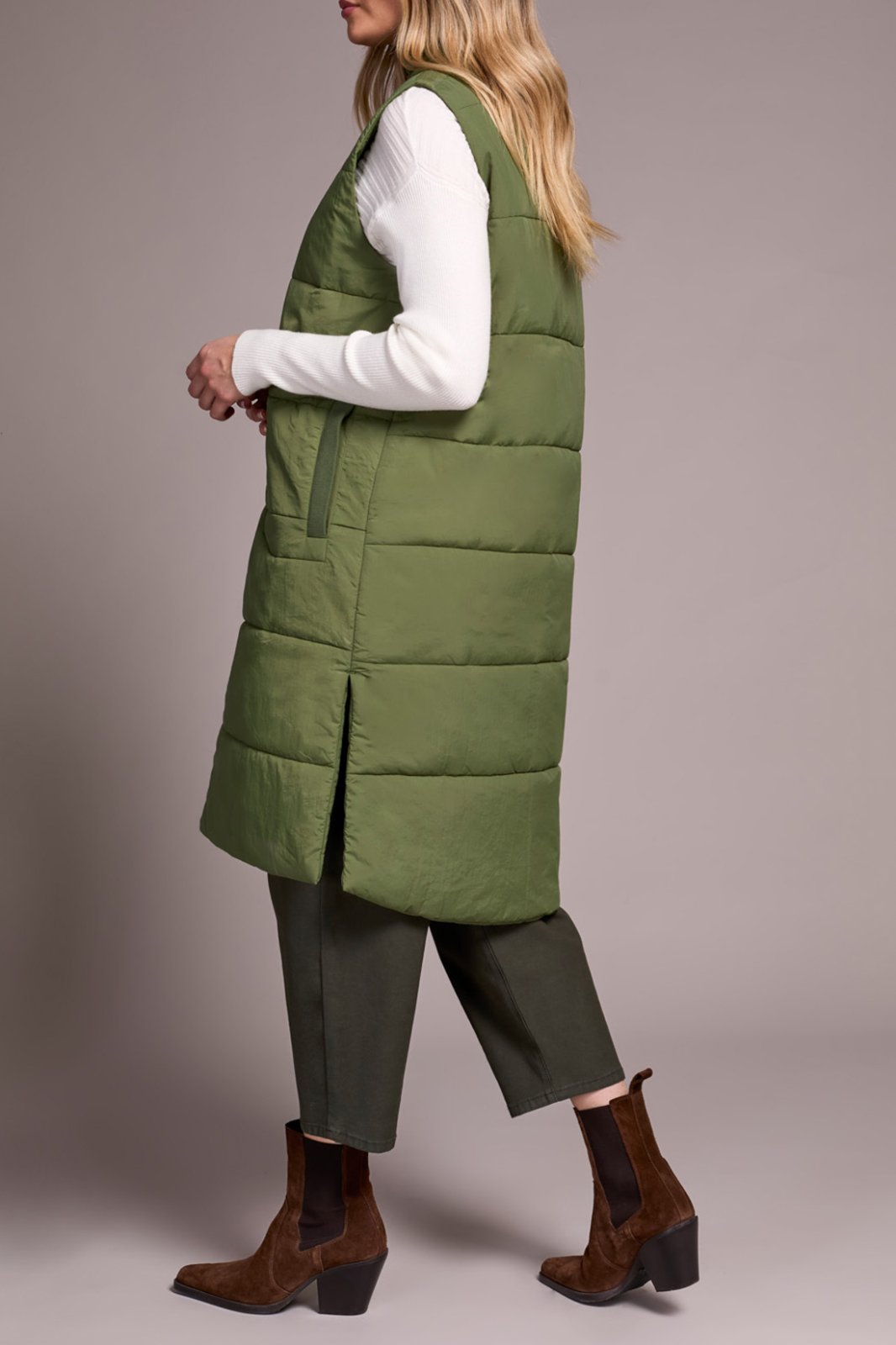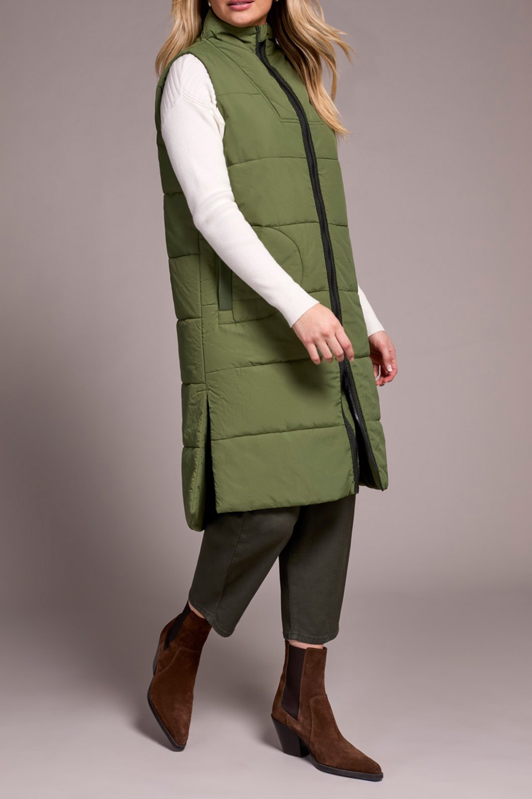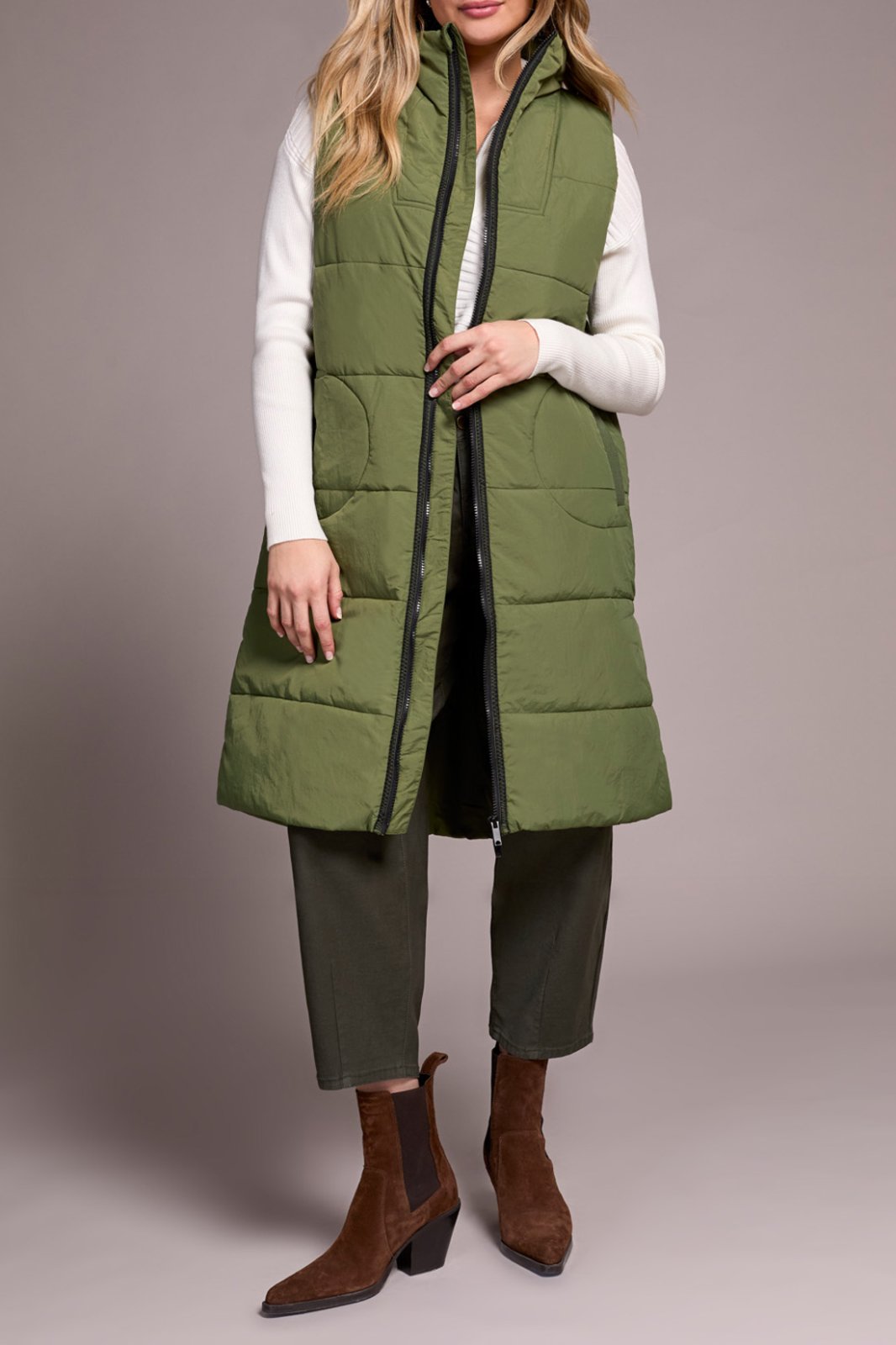 Tribal Ladies Chive Zip Front Quilted Vest