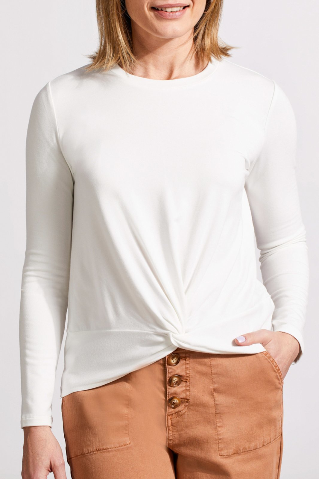 Tribal Ladies Cream Crewneck Top w/Knot Detail