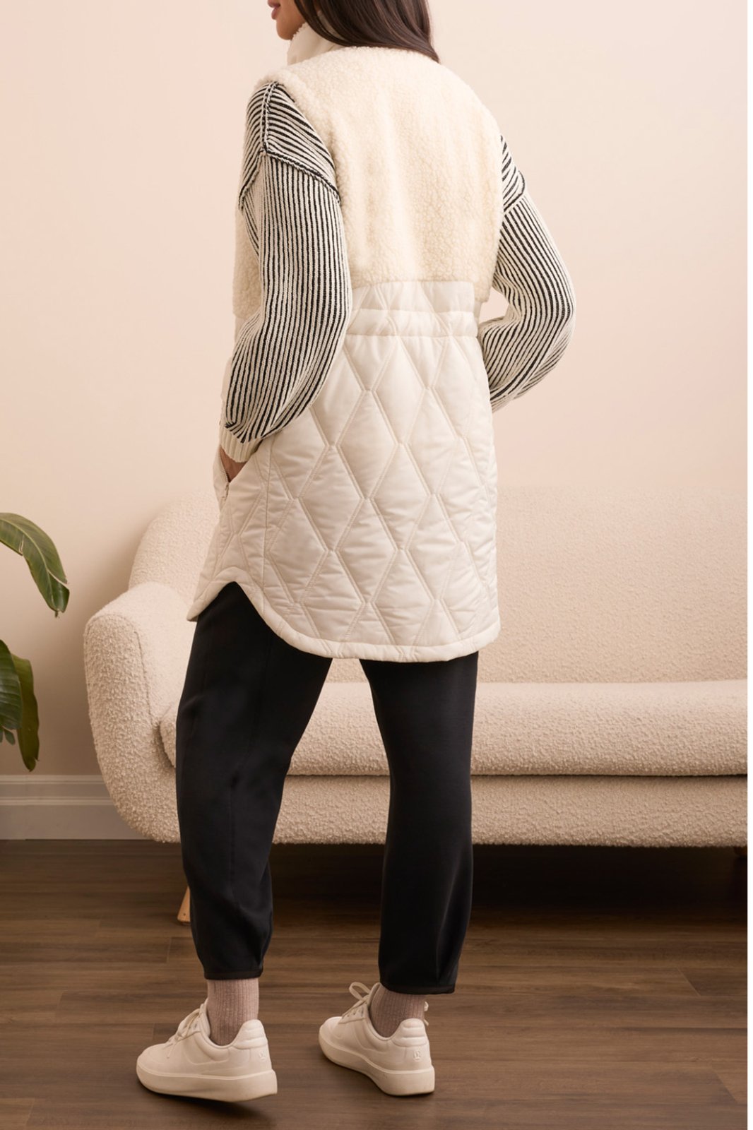 Tribal Ladies Cream Sleeveless Mix Media Sherpa Vest