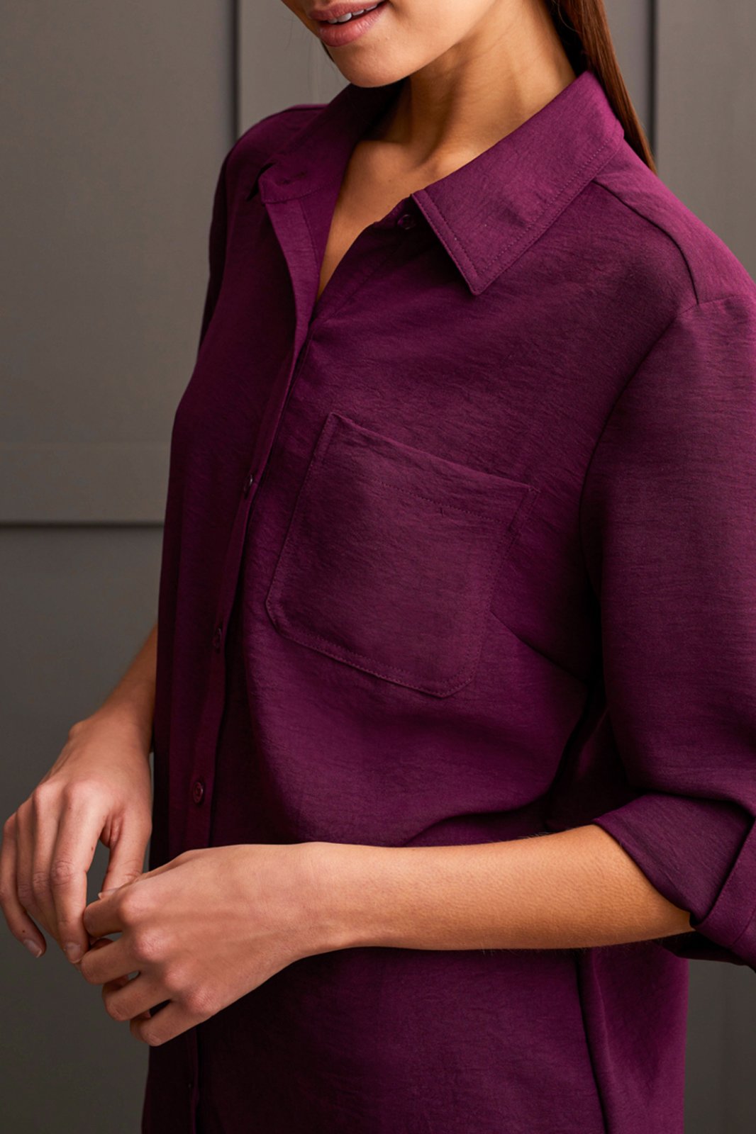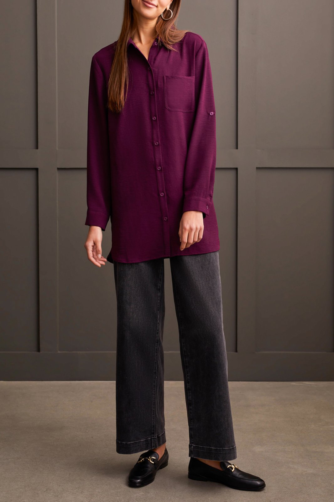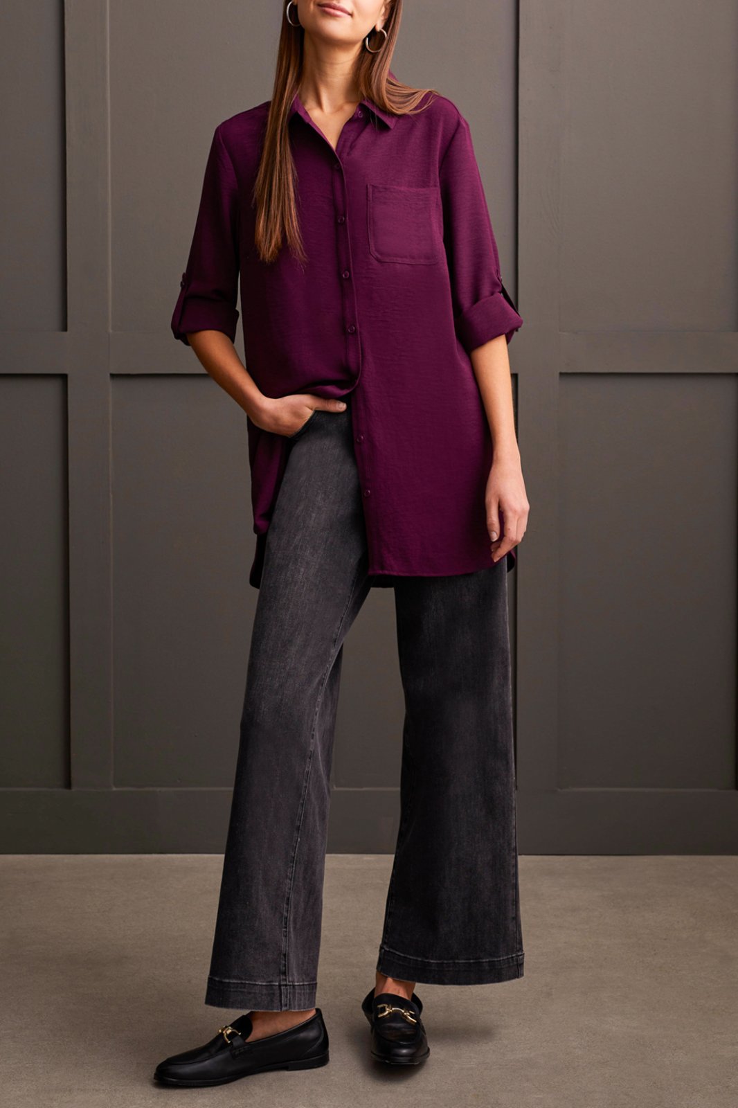Tribal Ladies Dark Plum Roll Up Sleeve Tunic Shirt