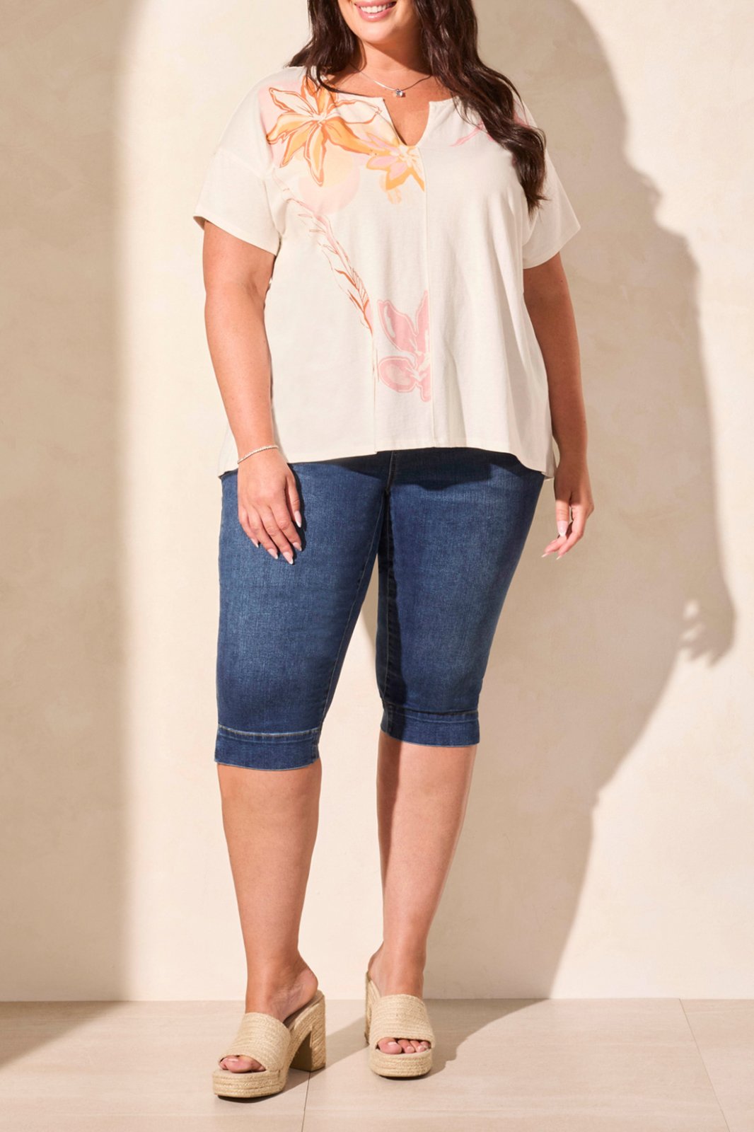 Tribal Ladies Ecru Size Inclusive SS Drop Shoulder w/Placement Print