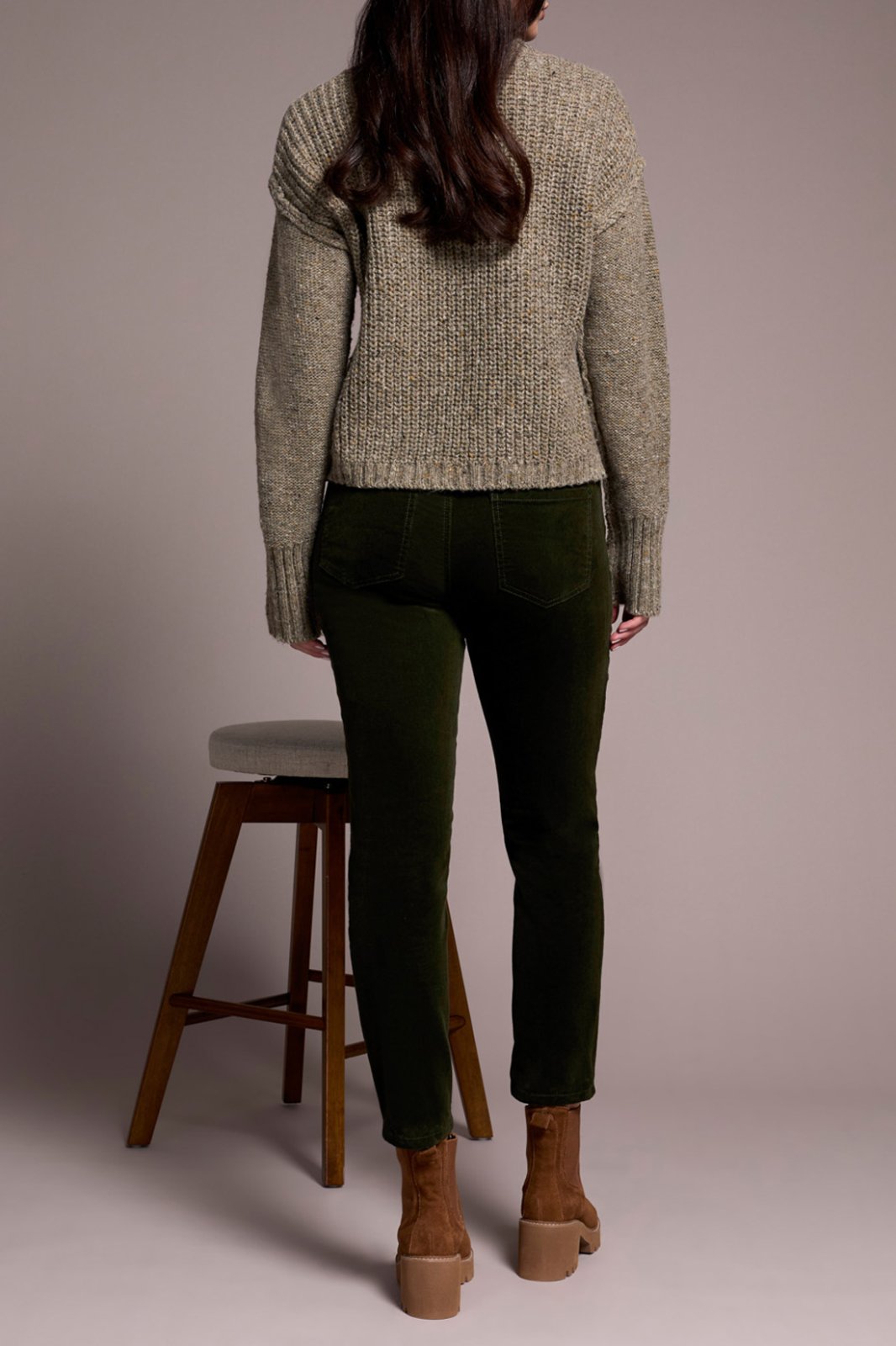Tribal Ladies Olive Leaf Crew Neck Sweater w/ Puff Sleeve
