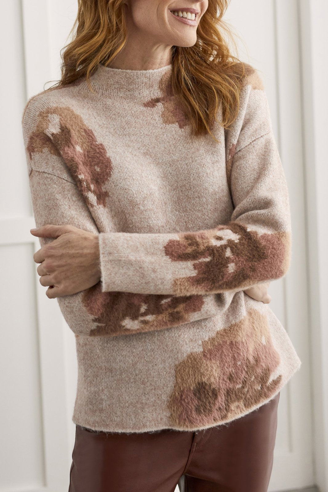 Tribal Ladies Rose Pink LS Funnel Neck Sweater