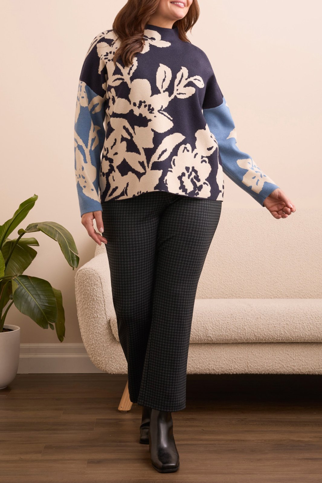 Tribal Ladies Sapphire Size Inclusive LS Funnel Neck Sweater
