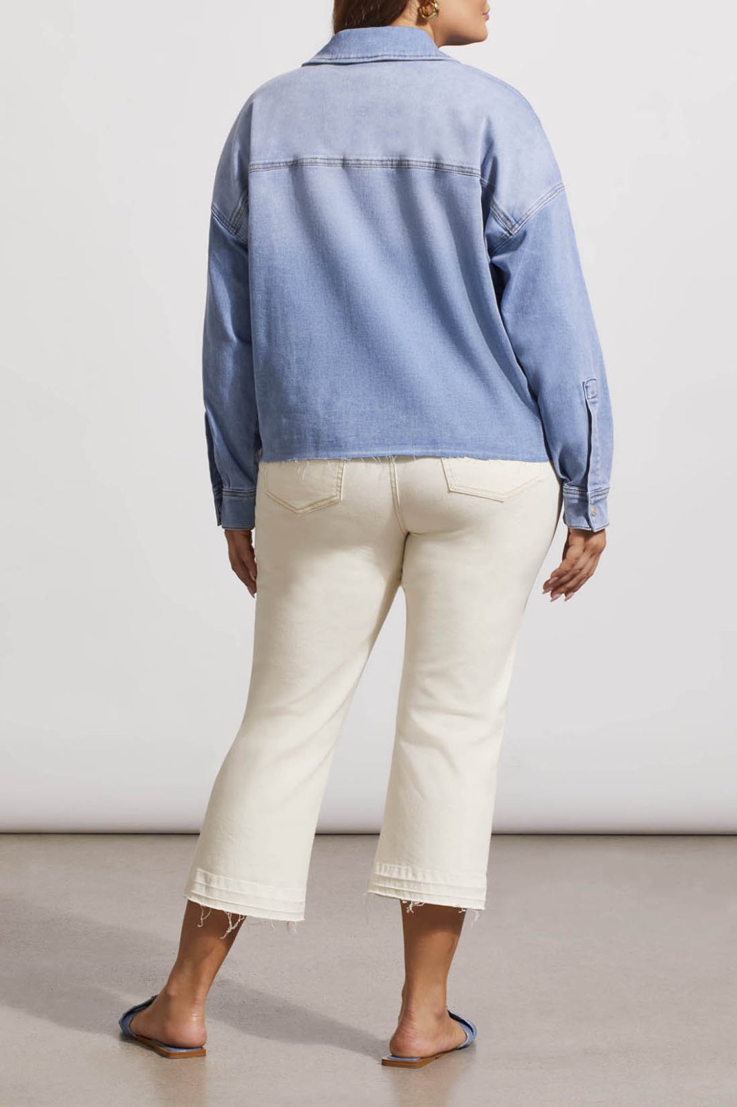 Tribal Ladies Sky Blue Size Inclusive Crop Denim Shacket w/Pockets