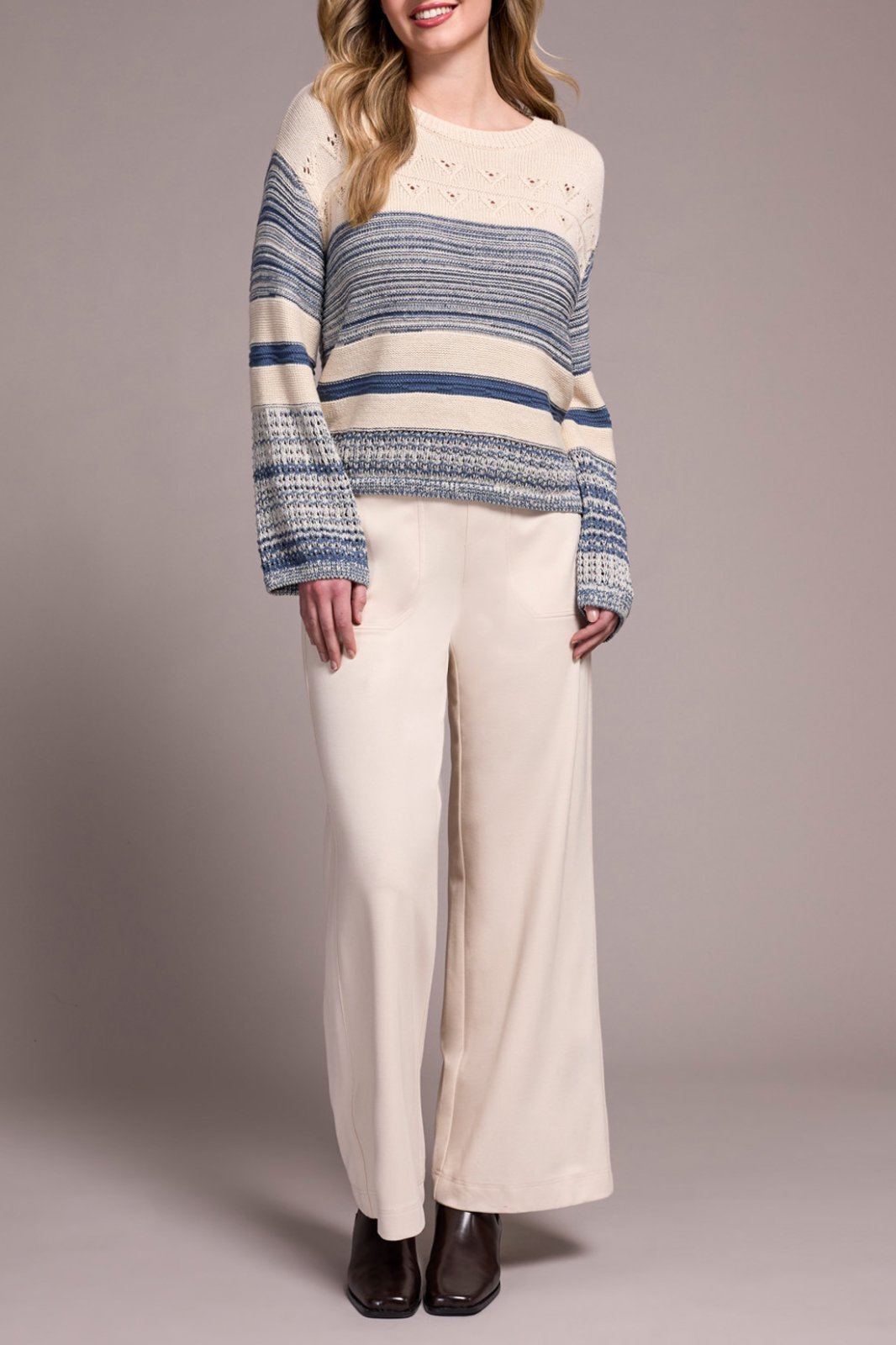 Tribal Ladies Slate Blue Long Bell Sleeve Boat Neck Sweater
