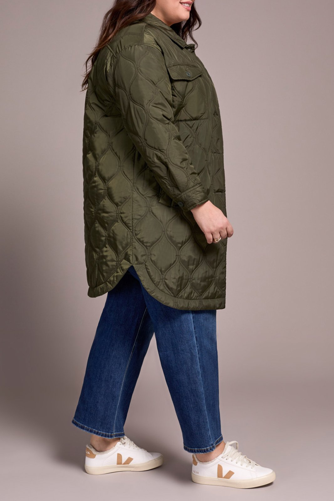 Tribal Ladies Spruce Size Inclusive Long Button Front Quilted Jacket
