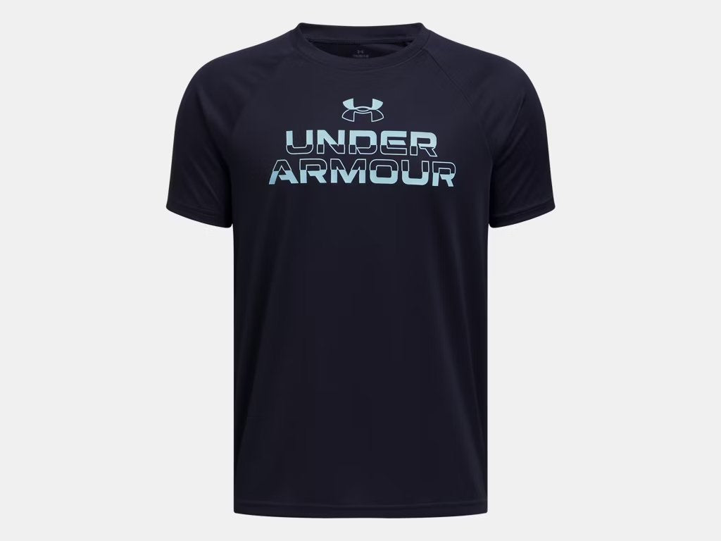 Under Armour Boys Midnight Navy Tech Split Wordmark SS Tshirt